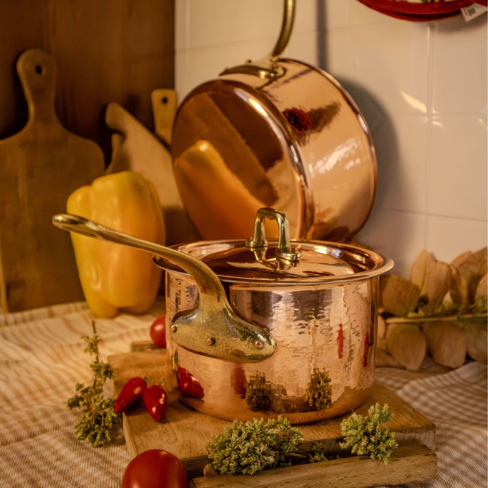 Design Funzionale ed Elegante Ogni pezzo di questo set è pensato per essere versatile e pratico, per un ampia varietà di piatti quotidiani, dalla realizzazione di salse e condimenti, alla preparazione di primi e secondi piatti a base di carne, pesce e vegetali. Grazie al notevole spessore del rame il tris garantisce performance e professionalità. Con il suo design elegante, il set è anche un elemento distintivo che si presta ad essere esposto nella tua cucina, aggiungendo un tocco di raffinatezza e tradizione.
