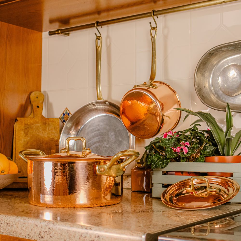- ● Ricavate da un'unica lastra di rame, martellate per una resistenza e durabilità superiore