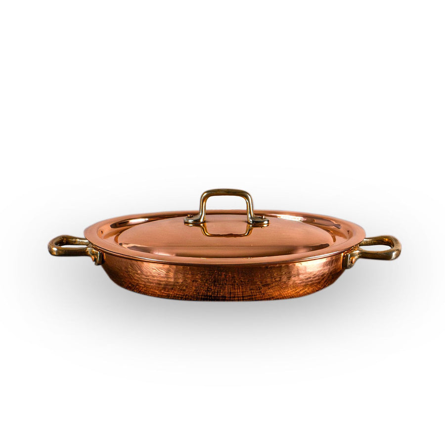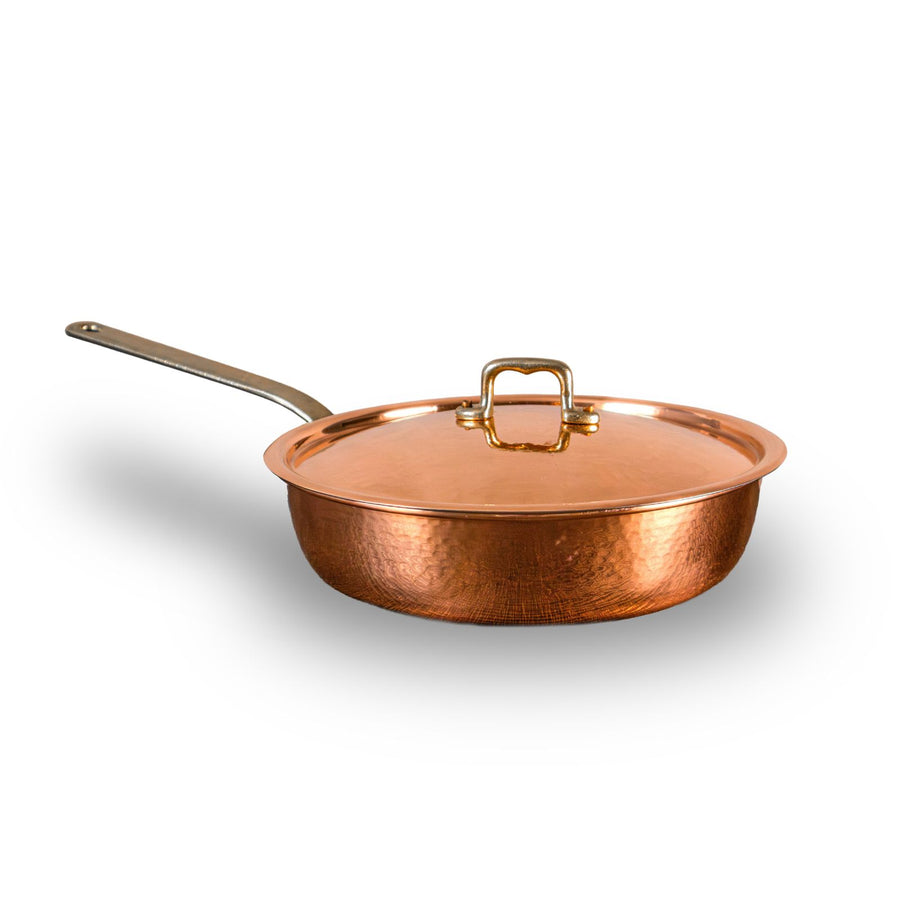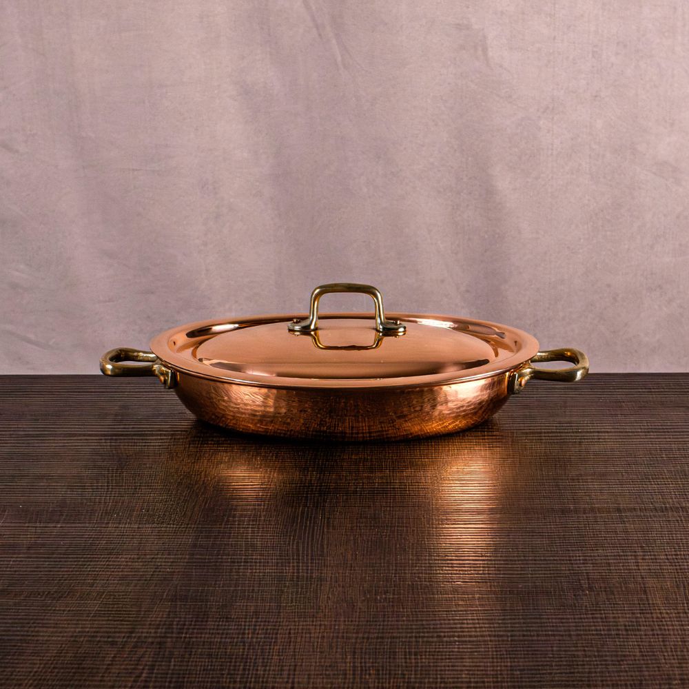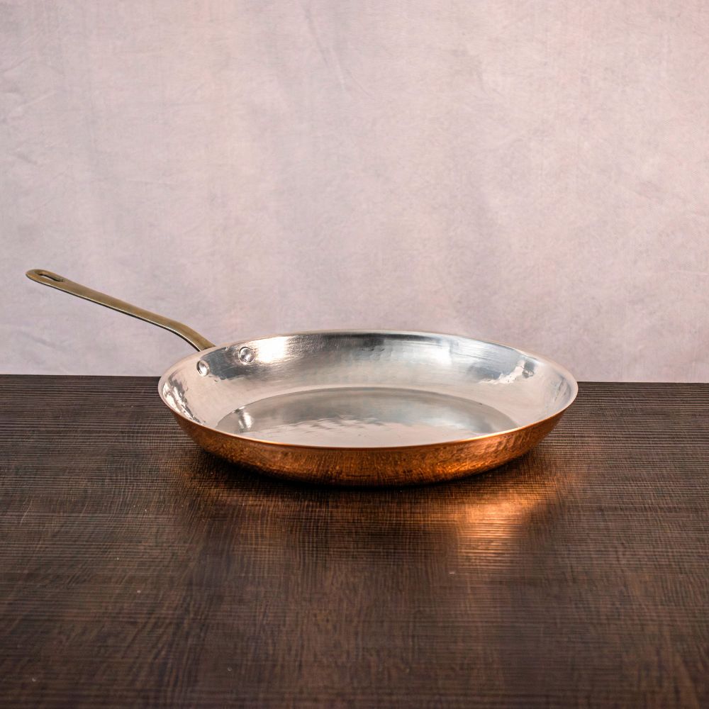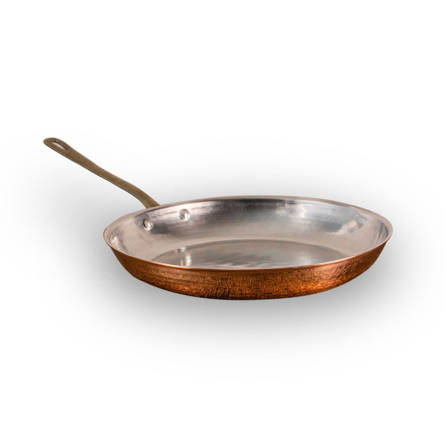 Fondo in Acciaio per Induzione - Rame Massiccio - Nessun Rivestimento - Solide Maniglie in Ottone - Martellatura Artigianale - Rifinitura Esterna Brillante - Rifinitura Interna Satinata